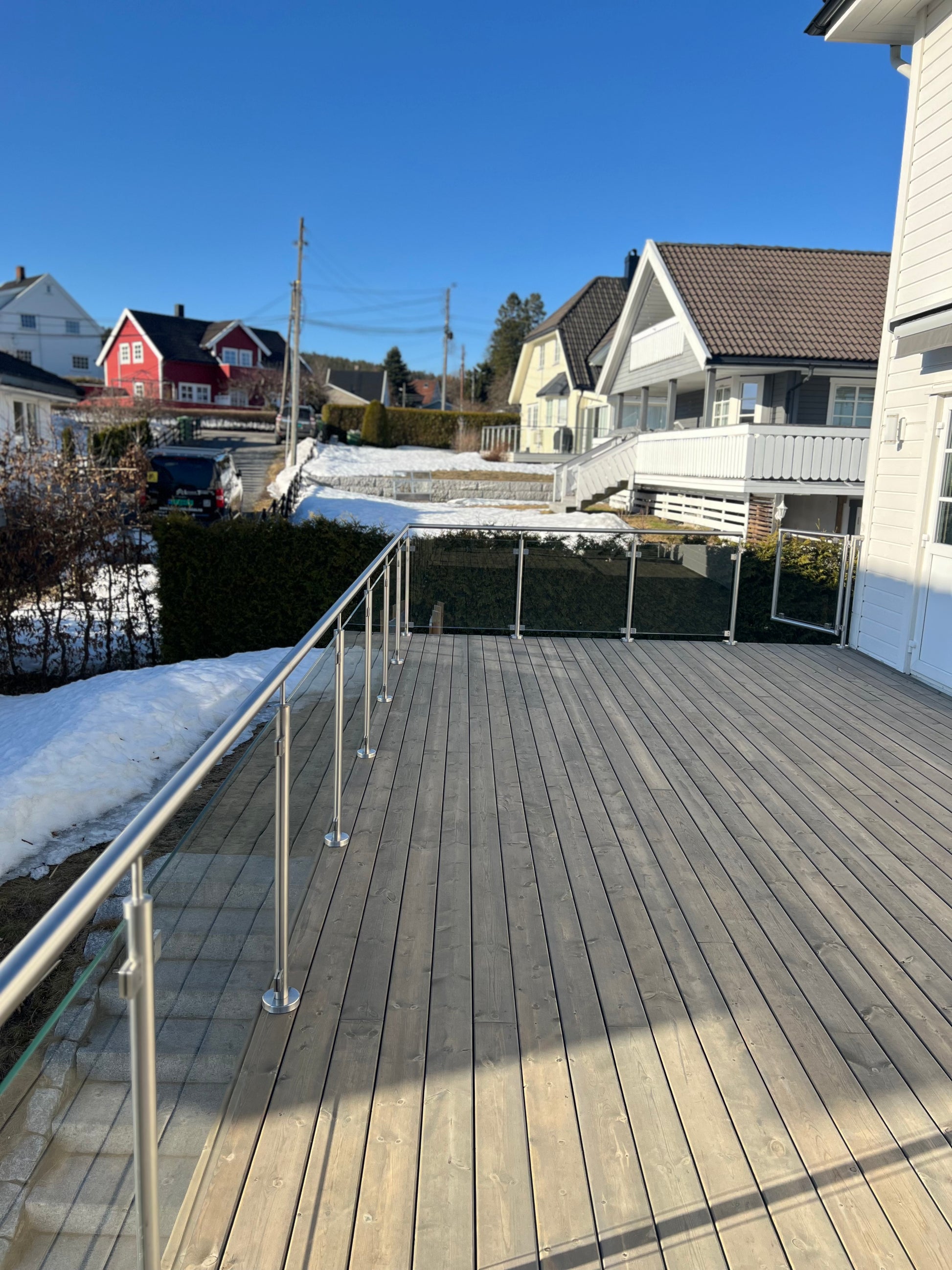 Montere et glassrekkverk med rustfrie stolper og håndløpere. Minstebestilling 10 lm. Prisen gjelder per løpemeter ferdig montert glassrekkverk. Prisen inkluderer glass og stolper. Prisen er per 1 lm av glassrekkverk, og prisen er oppgitt uten MVA. Det må legges til 25% mva i tillegg. Ring eller skriv til oss for å bestille en gratis befaring for rekkverk. Tel: 46376577